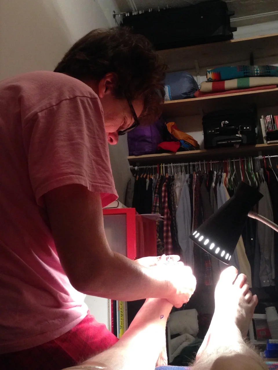 That night Mom finishes her work by clipping my toenails. Some of them really needed a lot of work.