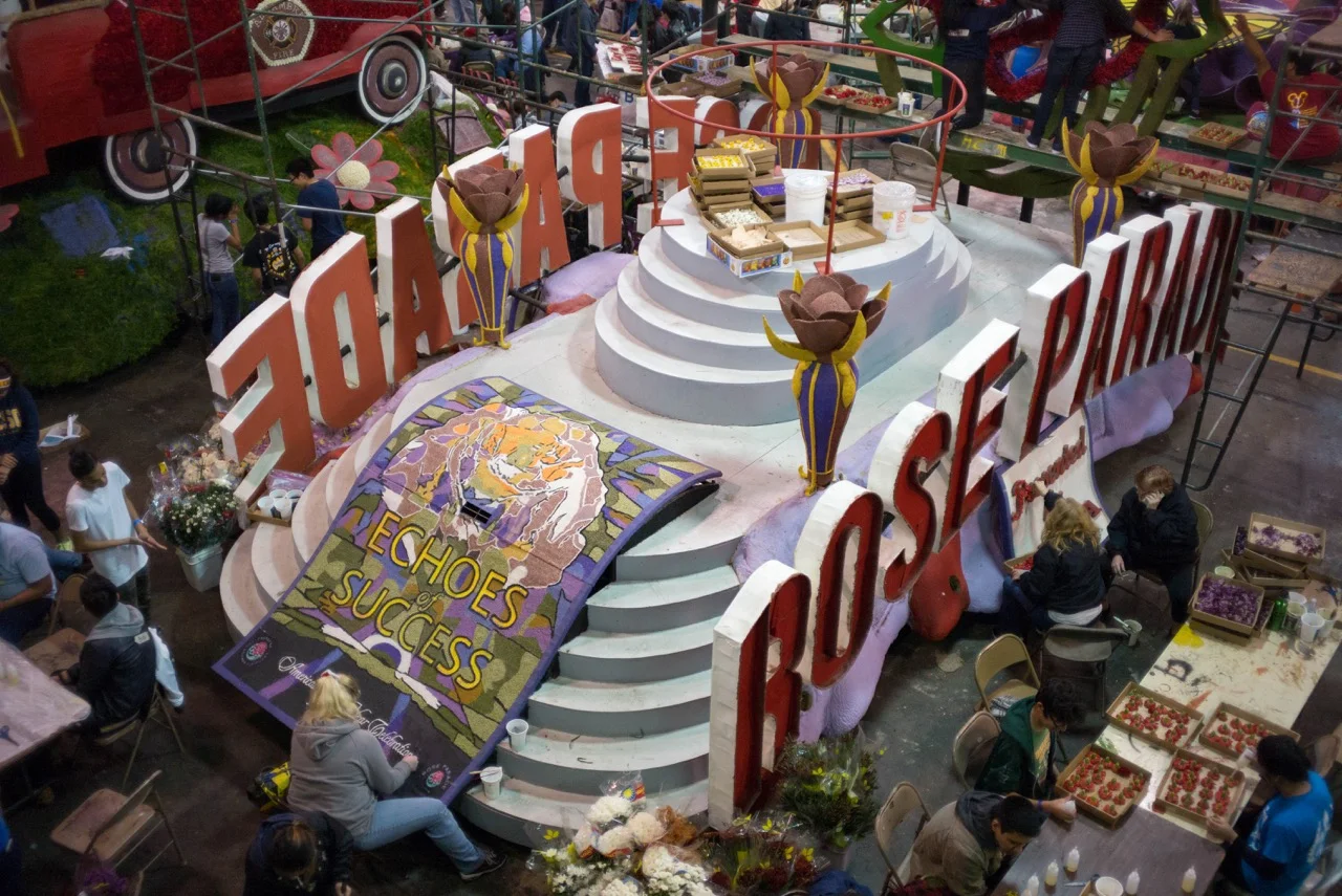 Then, with the Rose Parade just a few days away, we went to the Rose Bowl and watched the decorating of floats.