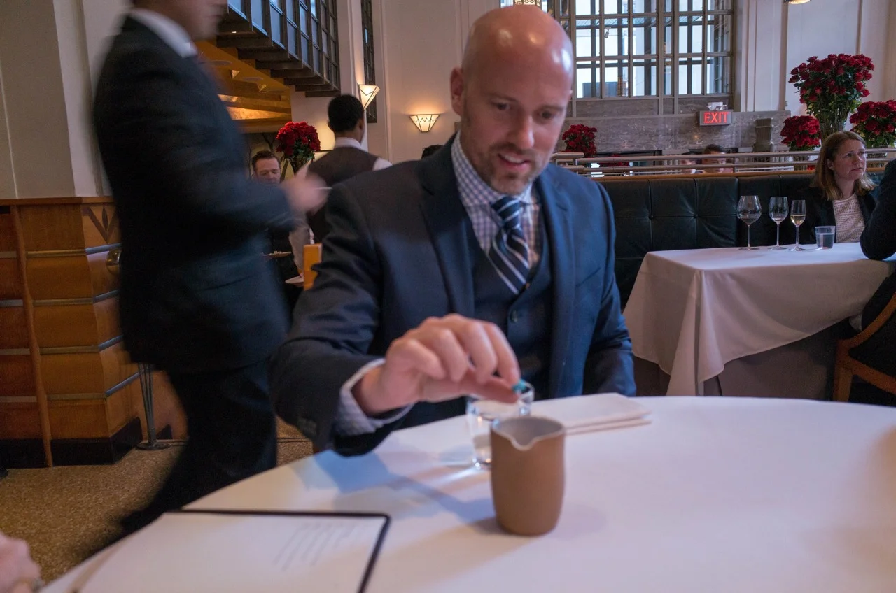 First fancy moment of the night happened when Jeff asked if they had something into which he could deposit his gum and they brought him this little jar...which was a lot classier then handing him a Kleenex or recommending he stick it under the table.