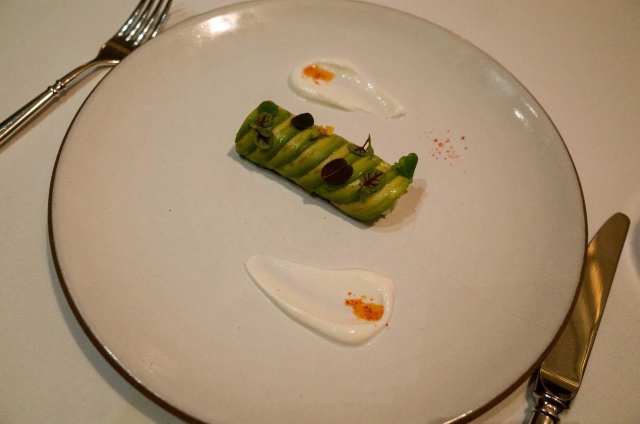 A super showstopper, just looking at all that thinly sliced perfect avocado you think about the skill required here but then also it was so delicious. Thinly sliced perfect avocado (where have I heard that before?) layered around shrimp with this dynamite yogurt and something else on the side. Left everyone at the table begging for more. A superstar flavor standout.