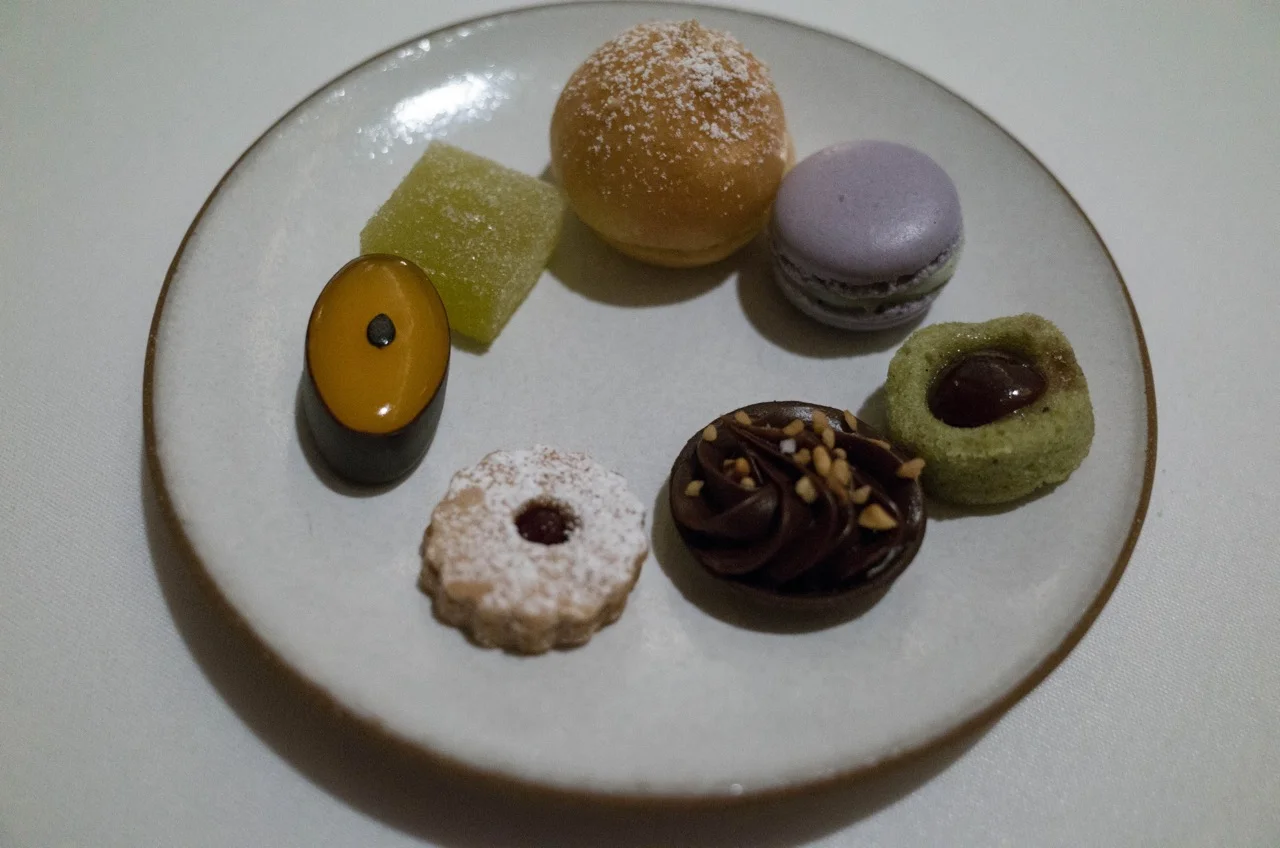 Bonus Items: Then they brought out all the cookies. What's the word for the cookies? I can't remember. But you got to pick which cookie you wanted to try and everyone said "I'll try all the cookies." The little dark chocolate passionfruit boat might have been the best one.